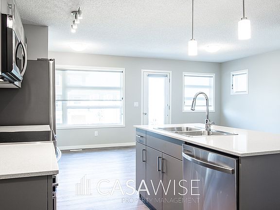 Gorgeous 3Bed+Den/1.5bath townhome - Single Garage - Balcony Enjoy life in this gorgeous 3Bed+Den/1.5bath townhome in Windermere! ? Modern finishes throughout ? Kitchen: Stainless steel appliances, 30" cabinets, quartz backsplash and island ? Quartz countertops and luxury vinyl plank and carpet flooring ? Bright living and dining with balcony access ? 3 spacious bedrooms with ample closets, a main bathroom and laundry ? Wrap-around patio for outdoor enjoyment ? Spacious entry and den with closet (great for an office!) ? Single car attached garage Langdale in Windermere is a charming, master-planned community with an old-English feel. Enjoy the urban forest, landscaped pond with trails, benches, and viewing decks. Located near Currents of Windermere, it offers easy access to amenities, restaurants, Cineplex, Movati, and Anthony Henday. Utilities, snow removal and lawn maintenance are tenants responsibility. No Pets. No Smoking. Professionally Managed by Casawise Property Management If interested, please provide us with your name, phone number, available times for viewings and a little background about you (when do you need the unit for, how many people would be living in the unit, etc.). Thank you!