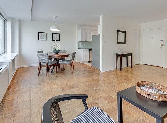 The Residence Deceptively large condo with wall-to-wall insulated windows offer ample sunshine and fresh breezes. Gorgeous wood floors. Whip up a tasty treat in the renovated kitchen, featuring granite countertops, glass tile backsplash, track lighting, and SS appliances. Bedroom is complete with wall of windows and over 12 feet of closet space. Custom built-ins keep everything organized. An updated bathroom with new vanity, mirrors, and lighting will help you start your day on the right foot. Enjoy the outdoor pool in the dog days of summer! 24 hour front desk! $2,400/month INCLUDES ALL UTILITIES. Parking is available for $250/month. Available September 1, 2025. Unit #304. Happy to give you a tour. Call/text with questions. The Neighborhood Best of locations! Easy to live car-free with Foggy Bottom Metro just a block away. Close by retail and restaurants with easy access to Georgetown, Kennedy Center, and downtown. 1 block to Whole Foods. Trader Joe's is minutes away. Easy access to IMF, World Bank, State Department and GWU. Rent includes all utilities. Parking is an additional $250 per month.