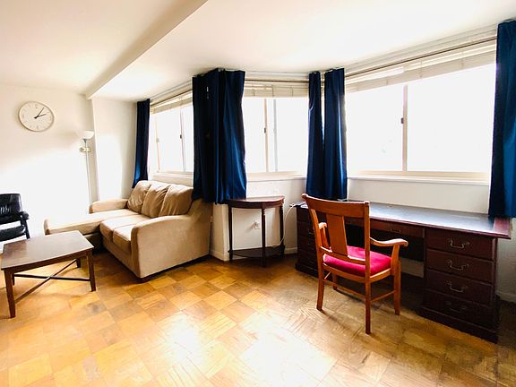 Summer rent before August. $450/week. Large, sunny studio unit located one block from Foggy Bottom/GWU Metro Station. The studio is beautifully furnished and utilities are fully included. It is on the 5th floor and residential street parking is available. Coin-op laundry in the basement. 7/24 front desk service. Please apply online on Zillow , especially tell us about 1) how many people will live in, 2) 3 month or one year lease, 3) house hold total income, 4) source of income, 5) what is your credit score. First month rent and security deposit is required for move-in.