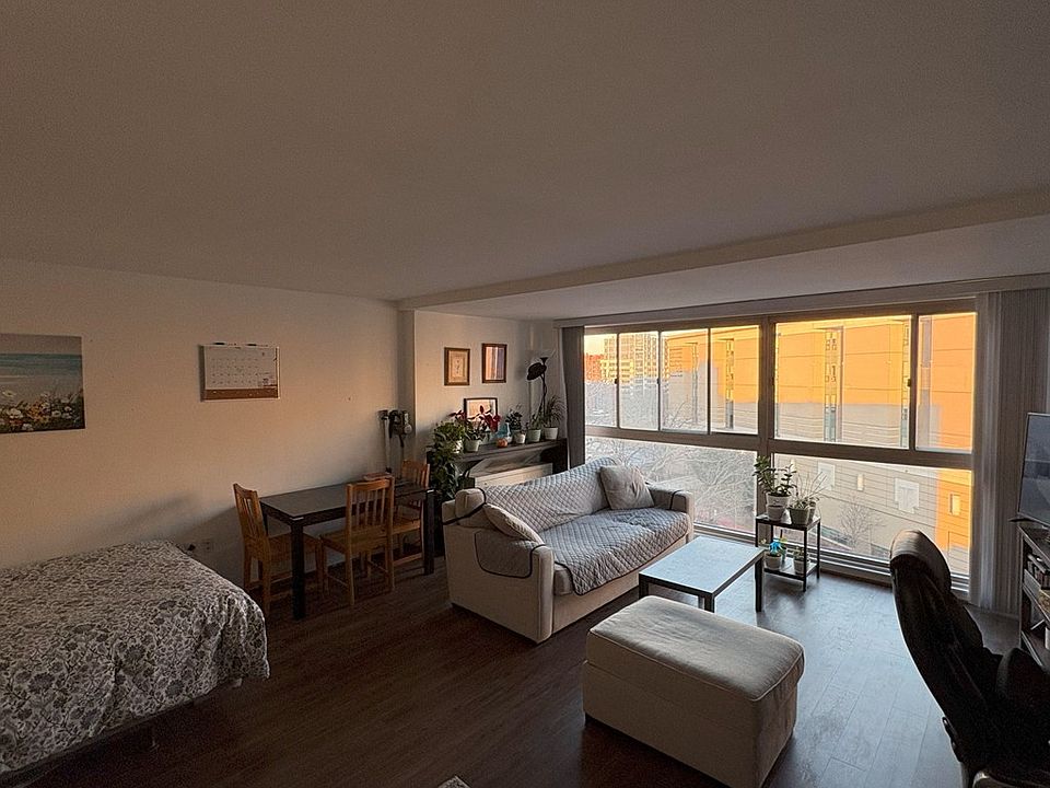 Studio available for rent starting April 25th, at the Jefferson House Condominium. Located on the top floor and is available either furnished or unfurnished. The condo was renovated in 2022, overlooks Washington Circle, and gets plenty of direct sunlight. Trash and recycling room on every floor. Laundry room on the ground floor. 24/7 concierge. The rent includes all utilities except cable/internet. The condo will be ready for move in by April 25th and is furnished with everything that is showing in the picture, including the kitchenware (we can remove them, however, if preferred). All the wall hangings will be removed, however, and the walls will be re-painted (white) prior to your move in. Background check will be performed prior to move in. No short-term leases. The building is on a walking distance to Foggy Bottom metro, multiple grocery stores, IMF/World Bank, Kennedy Center, jogging trails, restaurants, and other businesses. Bikeshare is across the street. Parking is on the street, or in the building garage (requires renting a spot from a parking owner). No short-term leases. Rent includes everything except for TV/Internet.