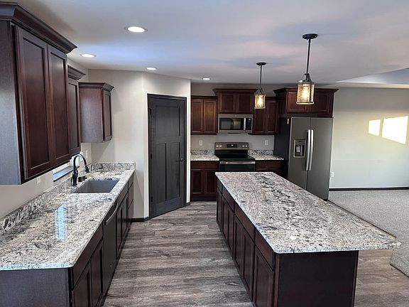 Beautiful New Construction in North Aberdeen! Enjoy every inch of this popular, functional split-foyer! With 6 beds, and 3 baths, space will not be an issue. You'll love the open concept kitchen with large island, granite tops, spacious corner pantry, Kaffe maple cabinets, crown moulding and appliance package! The primary bath has a nice walk-in closet and an en-suite with tiled shower and glass door. Main floor laundry is an added bonus as well! The lower level features a rec room with fireplace and mantel, 3 beds and a full bath. The 3 car garage is finished and heated with a floor drain. Beautiful exterior with stone and a full stone pillar. Don't hesitate, there is still time to customize by choosing your own paint colors and flooring! Inside photos are sample pics only.