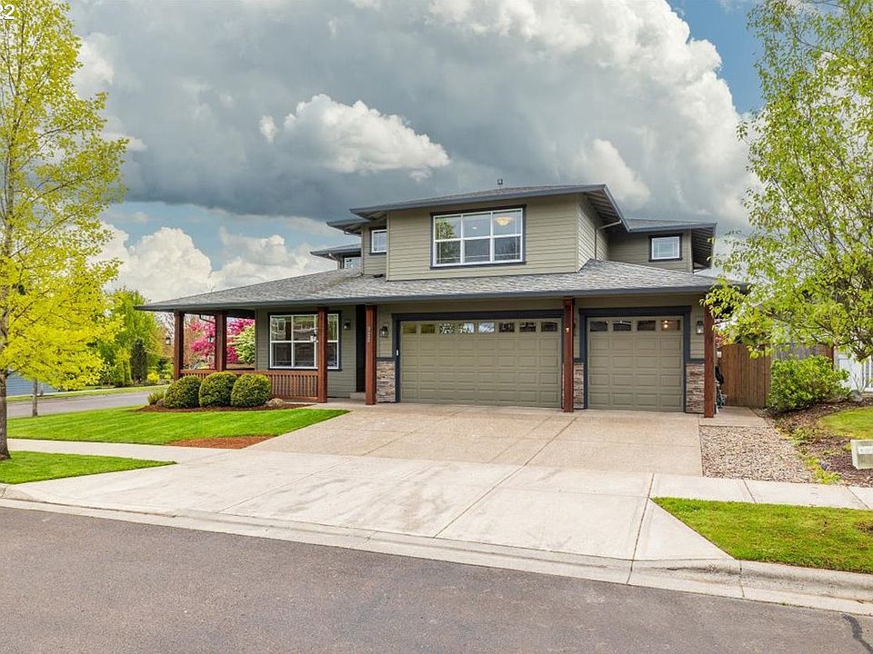 Beautiful Open Concept Home is Perfect For Entertaining w/ Large Bedroom & Full Bath on Main Level. You Will Love the Large Cooks Kitchen w/ Island that Opens to Great Room & Dining Area w/ Pantry, Gas Range & Hardwood Floors. Huge Corner Lot w/ a Covered Patio, Fully Fenced w/ Sprinklers, Deck & Fire Pit to Relax Outside! Primary Suite Features a Soak Tub, Walk in Shower & Large W/I Closet. Huge Bonus Room Upstairs. Lots of storage in the 3 Car Garage. Central AC. Across Street From Park.