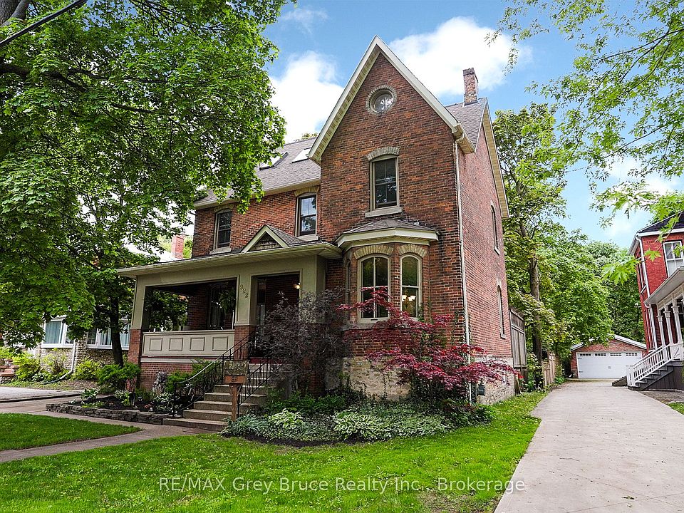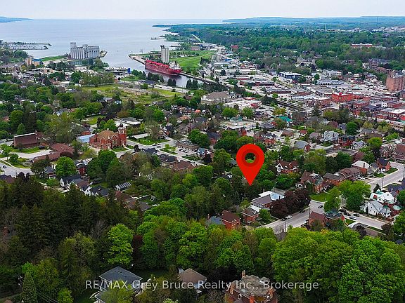 Historic elegance meets modern comfort! This beautiful 4 bedroom, 3 bath home offers timeless character and modern updates on one of Owen Sounds most prestigious streets. Surrounded by landmarks like the former U.S. Consulate, Billy Bishop House, and James Harrison House, it's just a short walk to the Mill Dam, Farmers Market, Library, and the River District. Inside, you'll find soaring ceilings, hardwood floors, oversized windows, and a sun-filled living room overlooking the charming verandah. The custom kitchen with quartz countertops and ample cabinetry flows into a formal dining room perfect for entertaining. Upstairs features three bedrooms and a large family bath with laundry, while the third-floor primary suite boasts skylights, a sitting area, and a spa-style ensuite. Heated floors in both full baths and the family room add year-round comfort.The fenced backyard is a private retreat with mature landscaping, waterfalls, a pond, stone patio, and expansive deck. With natural gas heating, central air, a basement walkout, and a rare 52' x 186.6' lot, this property offers history, charm, and an unbeatable location.