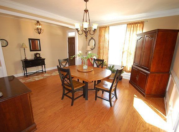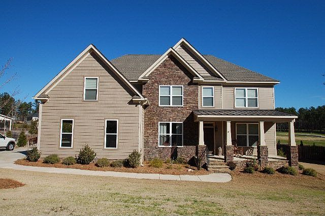 Beautiful home in golf course community built by JW Ivey. This 5 bedroom 3.5 baths includes a spacious foyer, Formal dining room, 2-story great room opening into the kitchen. Kitchen offers upgraded stained cabinets, stainless steel appliances, granite, island, breakfast area, large pantry, separate laundry room on main level and laundry room upstairs or large storage closet. There is an owners suite on the main level with lovely bathroom, double vanity, granite, tiled shower, Jacuzzi tub, spacious walk in closet. Upstairs, you will enjoy the large loft area for entertaining, owner's suite or in law suite upstairs with full bathroom. The second bedroom has its own bathroom. All rooms include walk in closets. There is lots of storage in this home! Beautiful wood flooring on the main level, lovely covered patio overlooking large private backyard with newly installed in ground pool and professionally landscaped backyard, sprinkler system, privacy fence, 16x12 shed and so much more. This is a pool and golf course community.