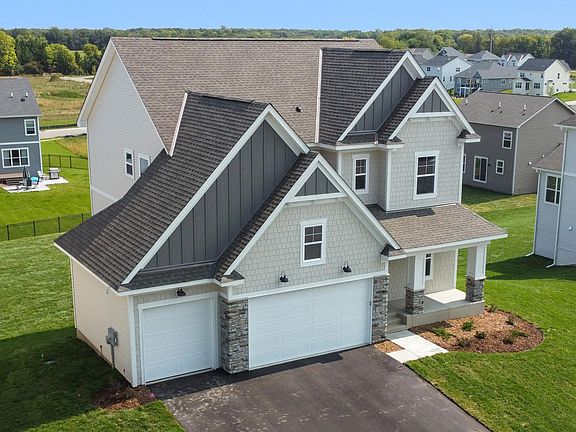Welcome to 922 Big Woods Drive, located in our charming Legacy Woods community in Delano, MN. This elegant two-story home offers 2,464 square feet of thoughtfully designed living space, 4 spacious bedrooms, 2.5 bathrooms, and a 3-car garage. Designed with the needs of our buyers in mind, this home blends comfort and style seamlessly. Step inside the inviting foyer that flows past a flex room and into an open-concept living area. The kitchen is a chef’s dream, showcasing quartz countertops, a large center island, stainless steel appliances, and ample cabinetry. The adjacent dining area and expansive family room provide the perfect space for entertaining, with a cozy fireplace and oversized windows that fill the room with natural light. Upstairs, you'll find the luxurious owner’s suite, complete with a private bath featuring dual vanities, a walk-in shower, and a sizable walk-in closet. 3 additional bedrooms, a full bathroom, and a convenient laundry room complete the upper level.