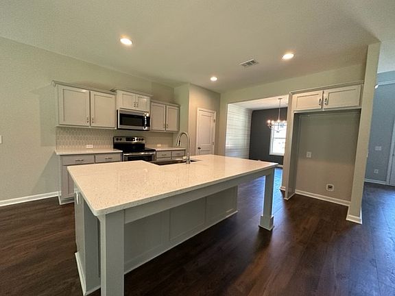 The BRAXTON PLAN features entry foyer leading to beautiful Dining Room featuring detailed trim-work accent. Open Family Room w/woodburning fireplace featuring stone surround. Kitchen features shaker styled cabinets, gquartz counters, designer selected tile backsplash, and Stainless Electric Range/Oven, Dishwasher, and Microhood. Guest Bedroom and Bath on main level. On the second level you'll find the Large Owner's Suite w/sitting area and a luxurious tiled bathroom with double vanity boasting quartz counters, garden tub, and separate tiled shower. Flex Space ideal for playroom or separate living area. Two guest rooms w/vaulted ceilings and a shared bathroom. Mohawk Redwood flooring in much of the main level common area and tiled flooring in bathrooms. Smooth ceilings throughout, pre-wired and braced for fans in guest rooms. Fiber Cement Siding, Architectural Shingled Roof, and Rear Covered Patio. Mins from Historic Downtown Opelika. Up to $6,500 in CC Assistance!