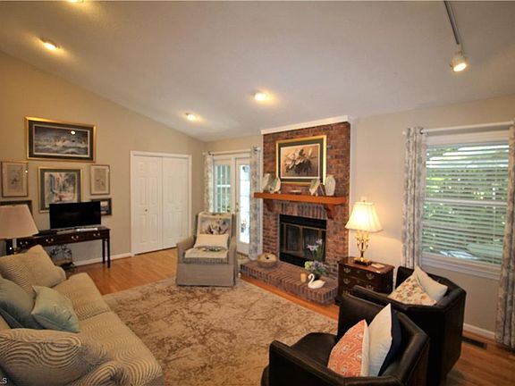 JAMESTOWN 2 bedroom 2 bath end unit townhome in Stonehedge! Remodeled kitchen with granite counter tops and backsplash. Bay window in kitchen. Hardwood floors throughout. Vaulted ceiling and fireplace in living room. Ceramic tile in bathroom. Hall Bath has been totally remodeled. Crown molding in bedroom and bath. Updated light fixtures. Some new vinyl windows in 2021. New Storm Door in 2020. New Water Heater 2021. Private deck. Unit backs up to woods. Neighborhood pool available with additional fee for membership, but not part of the HOA.