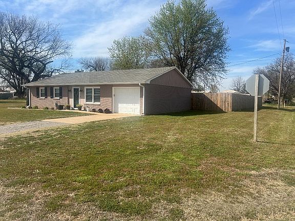 Modern charm meets quiet living and convenience in this Brick, freshly renovated, single level, three bedroom, 1.5 bath home with the open-concept living space that you are looking for. New interior finishes include luxury vinyl plank flooring throughout, a well appointed kitchen with cabinets and ample counter space, stylish granite countertop, gas range, new blinds, ceiling fans, and recessed lighting. The contemporary paint color compliments the fresh feel of this home. The master bedroom is spacious with large closet and an ensuite that features a large sink vanity. Unique to the home is the deep 1-car garage providing lots of storage space and pull-down ladder access to the attic. Exterior upgrades include new shutters storm door, patio, recent landscaping and a new Thompson Waterproofed fence that encloses the back yard for additional privacy. This home is positioned on a huge corner lot and is a short walk to the City Park/Pool and all the wonderful amenities this wonderful small town has to offer. Call today for your private showing.