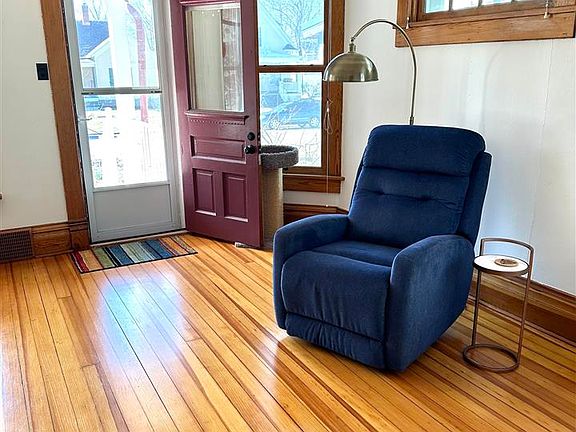 Adorable and quaint home in Goosetown! So much character and charm! The front room has so much beautiful natural light and gorgeous original hardwood floors that have have beautifully restored as well as woodwork. You are greeted by a cute front porch, perfect for enjoying a nice spring/summer evening in an established neighborhood. All windows have been replaced, kitchen remodeled with new counter tops, under cabinet sink, new lighting and all appliances stay and a half bath for convenience! Primary bedroom on Main or 2nd floor, your preference. All new full bath upstairs, as well as bedroom with so many built ins for so much storage! Water heater new in 2019. Furnace and A/C are newer. The yard has sooo many colorful plantings and stone walkways! Large shed in backyard is 2 years old. Basement has door/stairs for walk up to backyard. Security lighting on exterior. Lots of shade with trees in back. Plantings include milkweed, native prairie flowers, daffodils, cone flowers, phlox, crocus, surprise lilies, clematis, butterfly bushes. You must see this home to appreciate all it offers.