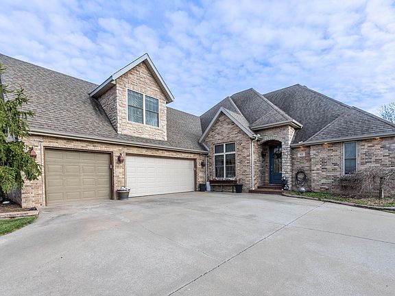 Nestled in a charming, highly sought-after neighborhood in Nixa, this stunning Country French Provincial home offers the perfect blend of elegance and functionality. Custom-built with quality craftsmanship, the all-brick and stone exterior enhances the home's timeless appeal. Set on a corner lot with a circle driveway, this home is visually striking. With approximately 2,600 square feet of well designed living space, this home provides ample room for both relaxation and entertaining. The large kitchen is a true highlight, featuring an expansive island, beautiful granite countertops, and gorgeous painted cabinetry with pull-outs for easy access. A generously sized pantry adds convenience and storage. It also has brand new appliances, including a new dishwasher and new disposal. The kitchen flows seamlessly into the living areas, where a cozy gas fireplace sets a warm, inviting tone. The formal dining area offers a versatile space that could also function as an extra living area or home office, depending on your needs. The split bedroom floor plan ensures privacy, with a spacious master suite. The suite features a double vanity, a walk-in shower, and a large walk-in closet that provides plenty of storage. Upstairs, a large bonus room with a closet offers endless possibilities, as a game room, guest suite, or home theater. This level also includes a full bathroom and generous attic storage space, perfect for all your seasonal items. The garage features a new door. The landscaping surrounds the property, creating a serene outdoor oasis. Step outside to enjoy the covered patio, perfect for relaxing or entertaining. A new irrigation system has been installed, ensuring that the landscaping remains vibrant year-round. This home is ideally located within walking distance to schools and the Community Center, and it offers easy access to hwy 65 making daily commutes simple and convenient. With its blend of luxury, comfort, and location, this is a home that truly has it all.