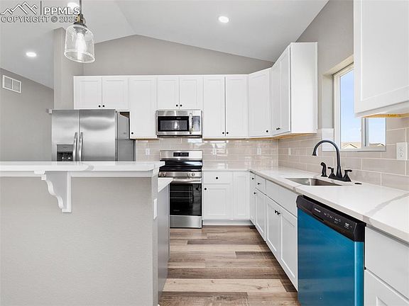 Take a look at this GORGEOUS newly built home with all the desirable features and finishes! Enjoy open concept living with luxury vinyl flooring and a beautiful electric fireplace mounted with stone accents to cozy up the living room and elegant quartz counter tops, custom cabinetry, a pantry and stainless appliances accented with a custom tile back splash in the kitchen. This kitchen has bar seating and the room off the kitchen can either be another family room or a large dining space or BOTH! The primary suite is large with walk in closets and custom shelving to organize how you wish. The 5pc master bath has double sink vanity with quartz counters and custom tile in the tub/shower area. The other main bath is also a 5pc bath with double sink vanity and custom tile as well. The views from this location are plentiful in every direction and access to Hwy 50 and I25 are super convenient.