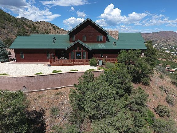 Truly a one-of-a-kind luxury timber frame home like no other, uniquely positioned at the top of the hill overlooking the beautiful Canon City lights. It is located in the county but has city water, power, natural gas, and telephone. Wireless broadband. Cypress plank flooring in dining room, mortice and tenon staircase leading up to the ample 580 sf loft with study area, bed, and full bath. Gourmet kitchen with large panty, top end built-in appliances including SubZero refrigerator. Dining area and great room are separated by a wood burning see-thru fireplace. Spacious executive office adjacent to den could be a 4th bedroom and wet bar area, great for entertaining. Master suite has his and her baths, his and her closets. Wood fireplace & Viking outdoor appliances complement the 2300 sf stamped concrete patio. 900' stamped concrete driveway gated for privacy.