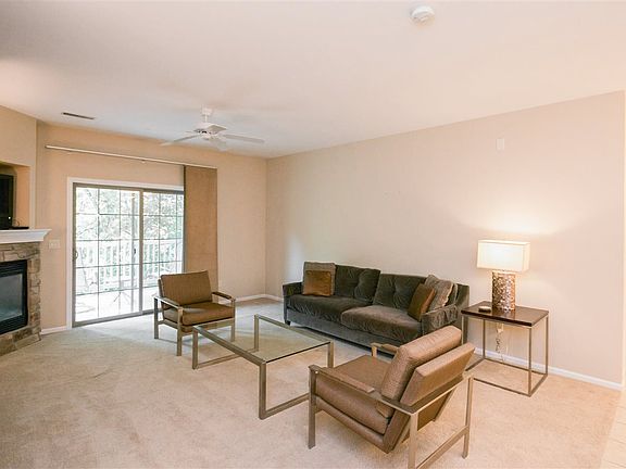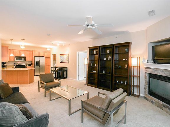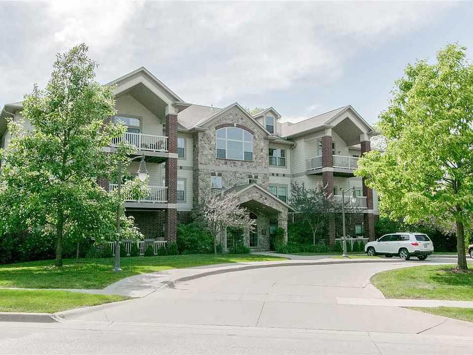 Second floor condo with beautiful wooded views. Main living area has open floor plan w/ sizable kitchen, breakfast bar, dining area, & LR with gas fireplace. Quartz counters in kitchen. Tiled floors in entryway, bathrooms, kitchen, laundry room. Master bedroom has an attached master bath w/ double vanity, shower, and walk-in closet. Second BR or home office. Laundry room w/ pantry storage. Covered deck off LR. Building elevator. Secure underground parking. Accessibility through universal design.