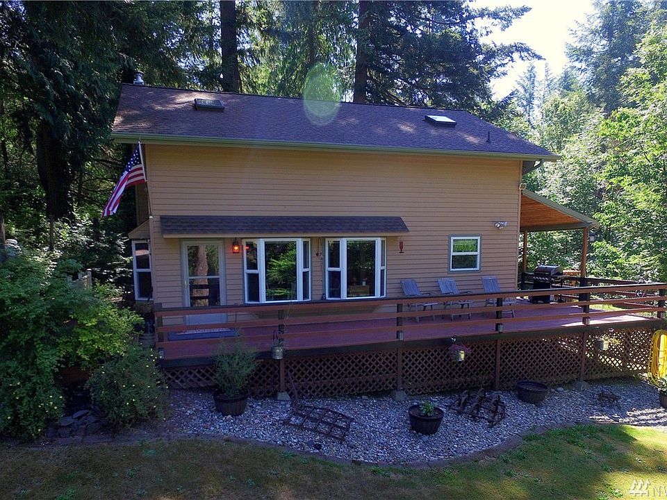 Contingent offer has been accepted with a 48 hour bump...Peaceful, private 2.5+ acres! Lovely home boasts wide deck, bay windows & bright open floorplan. New ductless ac/heat for year 'round comfort. Open kitchen w/ newer appliances. Beautiful, durable Allure flooring! Huge homesite incl fenced pet area w/ doggie door to adjoining enclosed patio, garden space w/ sprinklers & awesome outdoor entertainment area! Detached carport & addt'l detached garage/shop w/ built-ins. 3 parcels in sale
