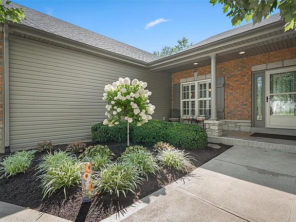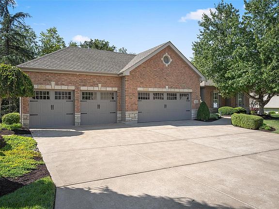 Beautiful 4 Bed, 4 Car Garage Ranch backing to Busch Wildlife Reserve. Custom arched openings, custom millwork w/wood columns on stone pedestals. Great room w/soaring ceilings, wall of windows w/ transoms & oversized woodburning fireplace, custom stone log holder, bookcases. Updated Kitchen w/huge island, gas cooktop, wall oven, walk-in pantry, bar area. Enjoy dinner on the large Covered Deck. Hearth room has floor to ceiling woodburning fireplace, door to private garden patio area. Tray Ceiling in Primary has 2 walk-in closets (original home office converted to luxury dressing room), luxury bath, travertine floor, adult ht. vanities & tub/separate shower*Beautifully finished Deep Pour Walk Out lower level, Media Room, Family room w/wet bar, 4th bedroom, full bath & additional walk-in for storage *Covered Deck & Patio w/Pergola overlooking serene wooded setting *Oversized finished garage w/epoxy floors *Inground sprinklers & Beautifully landscaped *Listing agent is related to seller.