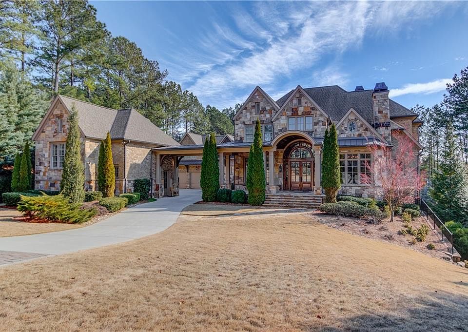 Experience the pinnacle of luxury living in this stunning brick and stone estate, nestled within the prestigious gated community of The River Club in Suwanee. Thoughtfully designed for both elegance and everyday comfort, this exceptional residence features a fireside study, formal dining room, and a main-level owner's suite complete with spa-inspired bath, jacuzzi soaking tub, and dual walk-in closets. The heart of the home is the gourmet kitchen, outfitted with a double island, a cozy breakfast area, and an inviting keeping room with vaulted ceiling - ideal for entertaining or relaxing with family. Upstairs, discover four generously sized ensuite bedrooms, a welcoming sitting area, and a secondary laundry room for added convenience. The fully finished terrace level is an entertainer's paradise, offering a full second kitchen with pot filler, steam shower, billiards area, guest bedroom, and a private office space. Step outside to your fenced backyard, already primed for a pool, or host guests in the private suite located above the secondary garage. This home blends timeless sophistication with modern amenities in one of Suwanees' most sought-after luxury communities - welcome to The River Club.