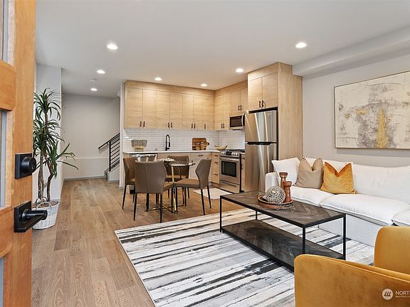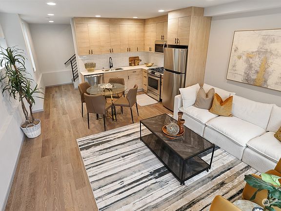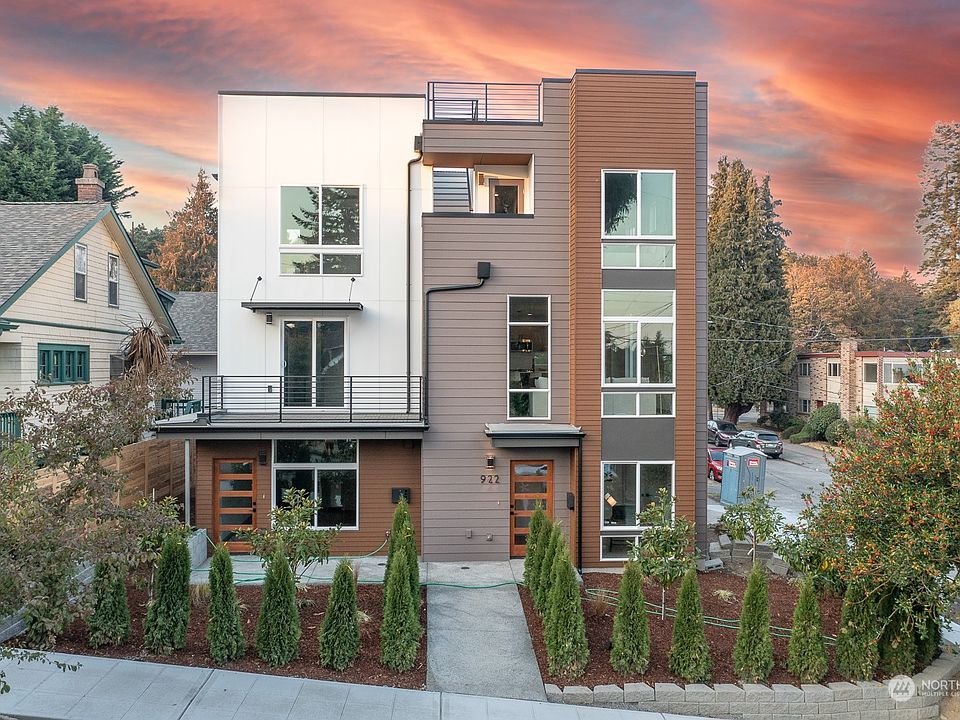 Welcome to this urban oasis in sought-after Wallingford just a block from Woodland Park & the Zoo and minutes from all amenities. This affordable new construction home features a light-filled modern aesthetic with designer finishes throughout. Oversized windows, sleek cabinetry & surfaces, beautiful wood flooring and high ceilings provide a sense of flow & serenity. Panoramic views of the City, Mount Rainier & Lake Union can be seen from the expansive rooftop deck. This home features two bedrooms & two baths--perfect for you, your guests. What else? Tandem parking for two cars, EV charger, built-in vacuum and AC! Easy commute & access to anywhere in the City! Come check it out.