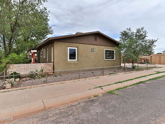 Welcome home! The working wood burning fireplace invites you to settle into your favorite chair with a good book. This wonderful adobe home gives off a warm and cozy vibe! The interior is gorgeous - southwest green plaster walls with the original cove ceilings and original hardwood floors. The kitchen has a dishwasher, and well maintained butcher block countertops. In addition to the 3 bedrooms in the main house, there is an art studio and a handyman shop attached. The huge, completely fenced back yard has lots of native plants, another shed for more storage, and a pergola with wind breaks! The plumbing has all been updated to the street, & the home features all new windows. This quiet little neighborhood has mature trees, and is very welcoming. Come see how far your money goes in Winslow