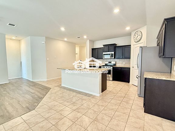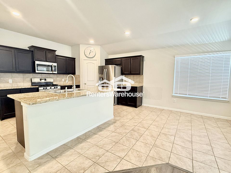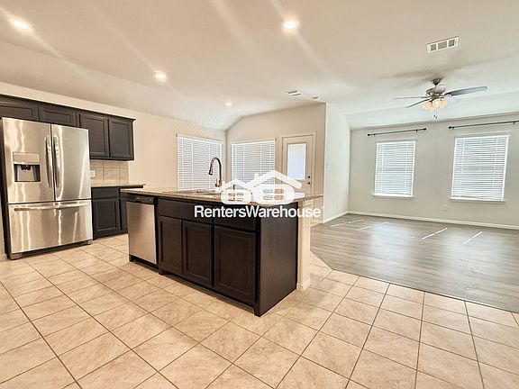This lovely home features 4 bedrooms and 2 bathrooms, with a thoughtfully designed split bedroom floor plan for added privacy. The large kitchen is a chef's dream, complete with an island, plenty of cabinetry for storage, and ample counter space for all your cooking needs. The open concept design seamlessly connects the kitchen to the living room, making it perfect for entertaining or family gatherings. The spacious laundry room comes equipped with a washer and dryer for your convenience. Step outside to the large backyard, which is fully enclosed by a 6-foot privacy fence, providing a peaceful and private outdoor space. Situated at the end of the street, this property enjoys the tranquility of no immediate neighbors on one side and is adjacent to a large, grassy area.