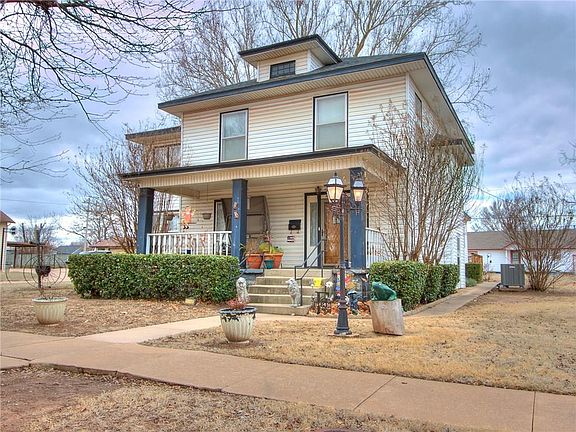 Stately 2 story home on large corner lot. Located in the heart of Kingfisher and conveniently located close to shopping, schools and restaurants. This would make the perfect home for a growing family. Offers 4 or 5 spacious bedrooms, 2 bathrooms & 2 car detached garage. So much charm and character! East facing front porch welcomes neighbors & visitors. A great spot to enjoy the morning sunrise. Aggressively priced for the motived buyer. Call today for details!