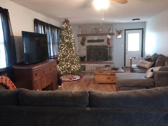 Welcome home to this beautiful modern farmhouse with it's classic white exterior set off by wood shutters, window boxes and stunning new porch railing. The open concept floor plan reveals itself as soon as you step inside. Your eyes are automatically drawn to the end of the large living space, where you are greeted by the cozy atmosphere of a gorgeous fireplace. all visible from the kitchen and dining room, which makes for a great entertainment space. The back yard space has a partial privacy fence plus chain link fence, with a covered deck great for grilling or to sit out and enjoy a cup of coffee. Quiet neighborhood right in the heart of town, close to local stores and restaurants.