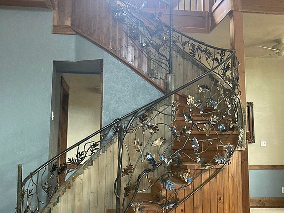 Amazing and incredible renovation of a 1900 Historic Church in the lovely bedroom community of Sundance, Wyoming...Painstaking and loving care to detail and exquisite taste. 4 bedroom 3 bath; rewired and new plumbing lines, the construction is original 2.6 construction, 95%+ exterior walls gutted and cleaned, insulated with R-19 Walls, R-38 in the 17' ceiling. The home has been rewired with new panels. There are 2 gas fireplaces and 1 electric fireplace. $ Ceiling fans and decorative wood ovals surrounding them. An addition accommodates the laundry room and extra storage (13x10). Gas fireplace in the primary bedroom, along with a connected bath, and a built-in cherry wardrobe. Numerous stained-glass windows throughout the home will delight and offer beautiful light and ambiance. Original oak flooring in the kitchen and great room, along with an original handmade door from the entry to the kitchen. Installed the loft with cherry and black wrought iron railing with 18 steps of cherry in a modified S curve. Bathrooms renovated to perfection with stained glass windows for accents and ambiance. Important notes as well; lath and plaster removed, with clean installation of new and up-to-date insulation. Egress window installed for the basement bedroom, along with a roughed-in bathroom for a full 4-piece bath as work in progress, and now can be purchased at any time, but the homeowner will continue to progress on the finishing details, or may plan to add their own touch!