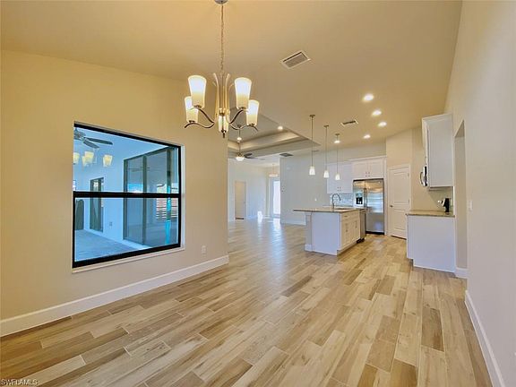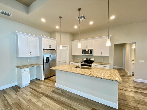 NEW CONSTRUCTION - READY TO MOVE IN. Open concept 4 Bedroom Pool home. Tile floors throughout home. Impact glass front entry double doors. Split bedroom floor plan offers privacy. Hall bath offers access from pool/lanai. Kitchen/Great Room with 10'4" ceilings and 11'4" Tray ceiling and 12' slider to outdoor living area. Kitchen includes 42" tall cabinets with dovetail drawers and soft close doors, large island with space for seating, granite countertops, tile backsplash and stainless steel appliances package. Master bedroom with tray ceiling and sliding glass doors that open to lanai. Master bath with dual sink granite countertop, and large shower, private toilet room and large closet. Granite countertops in secondary bath. Laundry room with free standing sink. Designer lighting package and LED bulbs throughout. Large private lanai with pool, pavers and screen enclosure. Paver driveway. Floritam sod with irrigation system. Not in a flood zone, save on insurance!