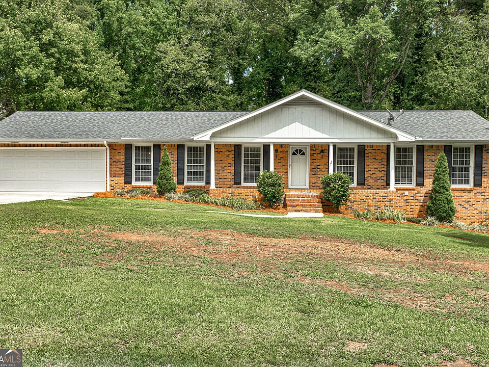Welcome to this charming ranch home with a terrace-level apartment, perfectly located just 3 miles from Trilith Studios and Piedmont Fayette Hospital! Nestled on a serene, private cul-de-sac, this home offers a spacious main level featuring 3 bedrooms, 2 bathrooms, a large laundry room, and a covered, screened-in porch. The eat-in kitchen boasts new appliances and granite countertops, complemented by a formal dining room, a formal sitting room, and a generous family room with a cozy fireplace. The fully finished terrace level provides a separate apartment suite with its own private entrance, a bedroom with a walk-in closet, a living area, a full bath with a large walk-in shower, a kitchenette, and a patio. This level also includes a large recreation room, an additional bedroom, a full bathroom, and a storage room-ideal for multi-generational living or guests. Outside, enjoy the welcoming rocking-chair front porch and the spacious, private, fenced backyard. This home is move-in ready and waiting for you! Call to schedule a showing. Pets considered.