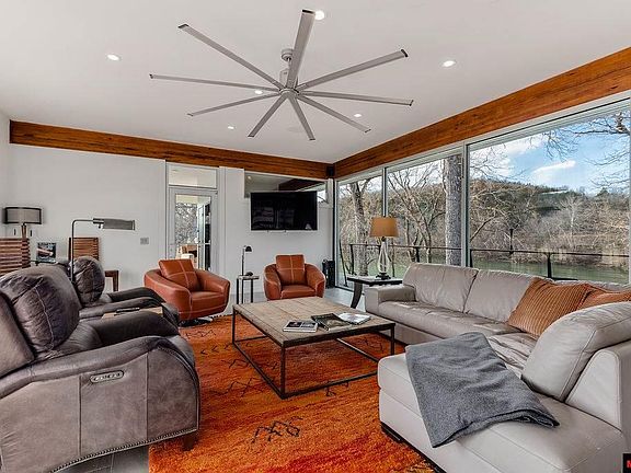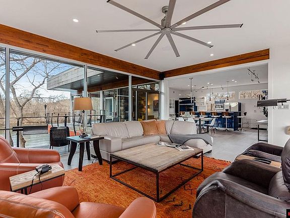 A Frank Lloyd Wright inspired with industrial flair- this 4700+ square foot river front home will knock your socks off. 2 master suites on main level. 4 bedroom, 3 bath with theater room, game room & bunk room in lower level. Open concept with floor to ceiling glass. Extra deep garage to fit your boat on the beautiful banks of the White River.