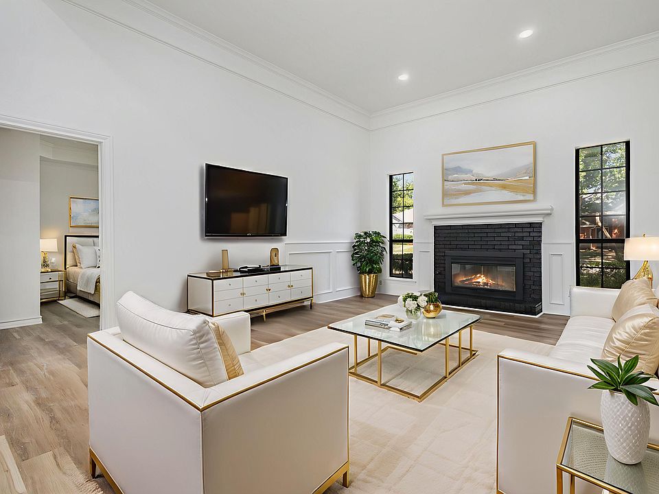 Cozy fireplaceHigh ceilingsAbundant natural lightStainless steel appliancesVersatile outdoor spaceQuartz countertopsCovered patio