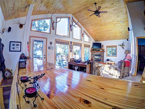 GORGEOUS log home on 2.4 park-like acres! Breathtaking views, huge deck, covered patio area & "tiny-house" shed. Inside are huge windows, log accents, solid pine doors, vaulted T&G ceiling, charming loft area- details abound. View from every window. Open kitchen flooded w/natural light. Floor plan has separate living areas, upper & lower. Awesome custom slab-wood bar! LL has family room w/wet bar. This mountain residence was made for relaxation. Awesome fire pit area. Your mini-resort! 81 IM F15