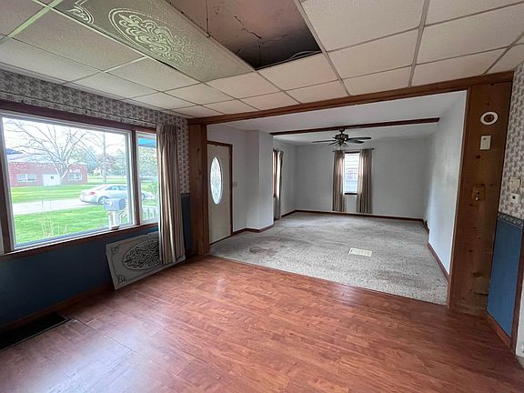 Great opportunity to make this house a home. Needs some clean up but nice exterior with vinyl siding, newer roof, fenced in HUGE yard with above ground pool and deck. First floor features nice sized living room and dining room area, large full bathroom with tub and shower and large galley style kitchen with pantry closet. Upstairs has 3 bedrooms plus a loft. Needs some TLC and will make a great home! Newer roof, furnace and all windows have been replaced some years ago with lifetime warranty. Sold as is.