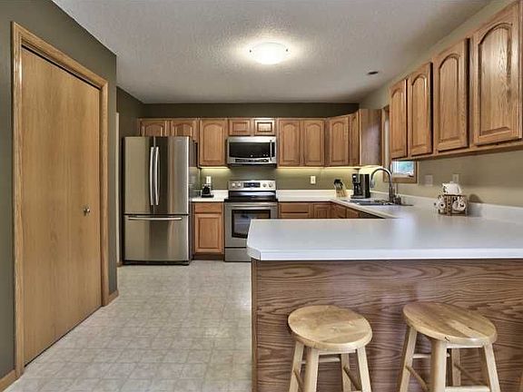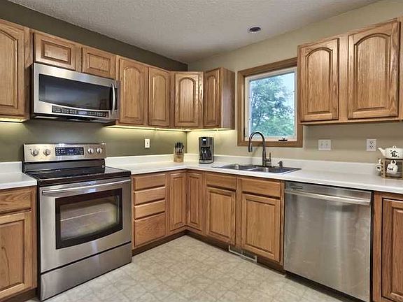 GREAT TURN-KEY HOME WITH CUSTOM WALL COLOR AND MATURE TREES IN THE REAR YARD. EAT-IN KITCHEN OFFERS 2010 NEW STAINLESS STEEL APPLIANCES, NEW NICKEL HARDWARE AND LIGHT FIXTURES, UPGRADED FAUCET, LARGE PANTRY CLOSET, AND BREAKFAST BAR. UPDATES INCLUDE 2013 CONCRETE DRIVE, 2011 ROOF, 2010 95% EFFICIENT FURNACE AND AIR. COVERED FRONT PORCH, REAR YARD PATIO, VINYL WINDOWS, AND SIDING. GARAGE IS FINISH COATED WITH CUSTOM PAINTED FLOOR. PULL DOWN LADDER FOR STORAGE ACCESS. MASTER BEDROOM HAS VAULTED CEILINGS AND BATH SUITE WITH HIS AND HERS SINKS AND CLOSET. BATHROOMS ARE UPDATED WITH MODERN LIGHTING, FAUCETS AND MIRRORS. RECREATION ROOM IN LOWER WITH BONUS ROOM OFFERING A LARGE WINDOW AND WALK IN CLOSET. AVERAGE GAS: $118.ELECTRIC: $91.