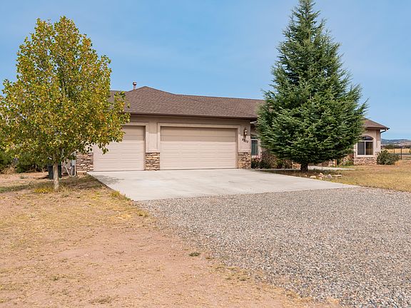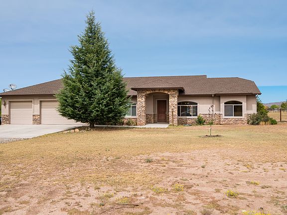 Welcome to your own little piece of paradise here in Northern Prescott Valley. This property has almost a 360 degree views of all of the mountain ranges, from Mingus Mtn to Granite Mtn The home itself offers up a split floor plan, with a large oversized master suite with large walk in closet and awesome bath. There is a 4th bedroom/office, that has a half bath in it, so there is versatility that every family wants and needs. The home comes with a new air conditioner, new wood flooring, new granite counter tops,new oven/stove, new travertine installed on the fireplace, new 14' x 20' Tuff shed. Most of the updating has been done for you. Outside there is an oversized new paver patio with pergola and 2 flat totally usable acres to make your own.Come see this property soon and make it your own