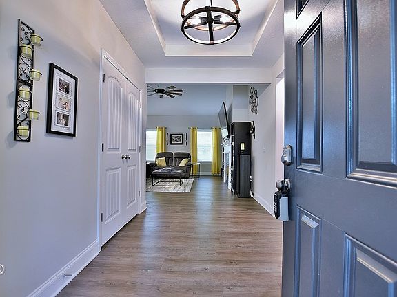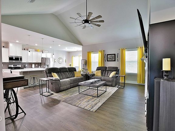 Welcome to your dream home in Midland, GA! This stunning one-level home features 4 bedrooms, 2 baths, and an inviting open floor plan perfect for modern living. 9 foot ceilings add to the openness of the home. Step into the heart of the home and discover a beautiful kitchen featuring a huge island with quartz countertops, ideal for culinary adventures and entertaining guests. All appliances, including the refrigerator and washer and dryer, are included, making moving in a breeze. Separate laundry room and nice sized pantry. The main living areas showcase LVP flooring, adding both elegance and durability. The master bathroom is exquisite with double vanity, large shower, tub and walk-in closet. Outside, unwind in your private backyard, providing a serene backdrop for relaxation and outdoor gatherings on the covered patio. Sprinkler system, 2 car garage.