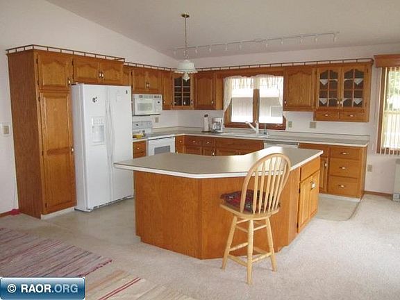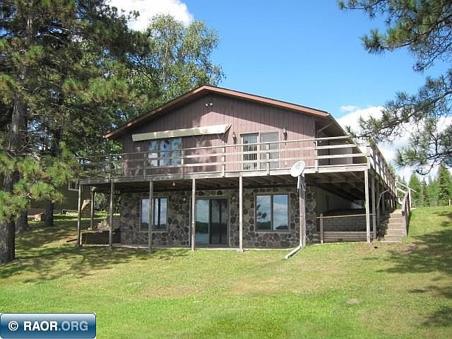 Little Sand Lake, newer 2 BR home w/open concept LR/DR/Kitchen, LL family room w/second kitchen ideal for entertaining, sewing room, w/walk out to patio, deck w/power awing to shade you from the sun. Off peak heating, tons of storage. 2 stall oversized garage. 115 ft of frontage w/sandy bottom. Compliant Septic. Pleasant 15 minutes to Virginia.