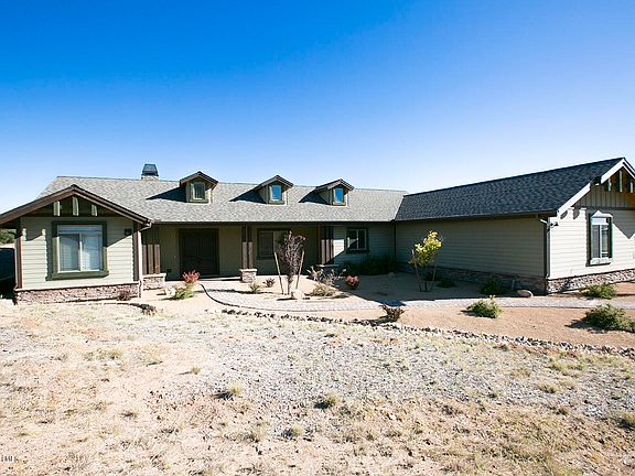This beautiful 3BD/2BA custom home is located at the base of Granite Mountain in one of Prescott's premier equestrian communities. A single level home with an open floorplan & panoramic views from every window. Features include a fireplace w/stone surround & custom wood hearth, peel pole accents, 3 1/2 (1022 SF) garage w/coated floors & storage. Fantastic outside entertaining on several paver patios each w/breath-taking views. Located on an expansive meadow backing to open space. The community offers $5+ million in amenities including gorgeous clubhouse w/kitchen, meeting rooms, fitness center & game/billards rm, pool, playgrounds, ''catch & release'' fishing pond & miles of trails. Direct trail access to Deep Well Ranch & Nat'l Forest Granite Mountain Trail system, which is considered the