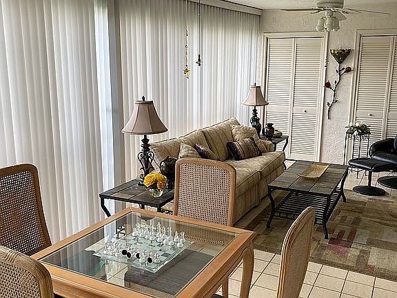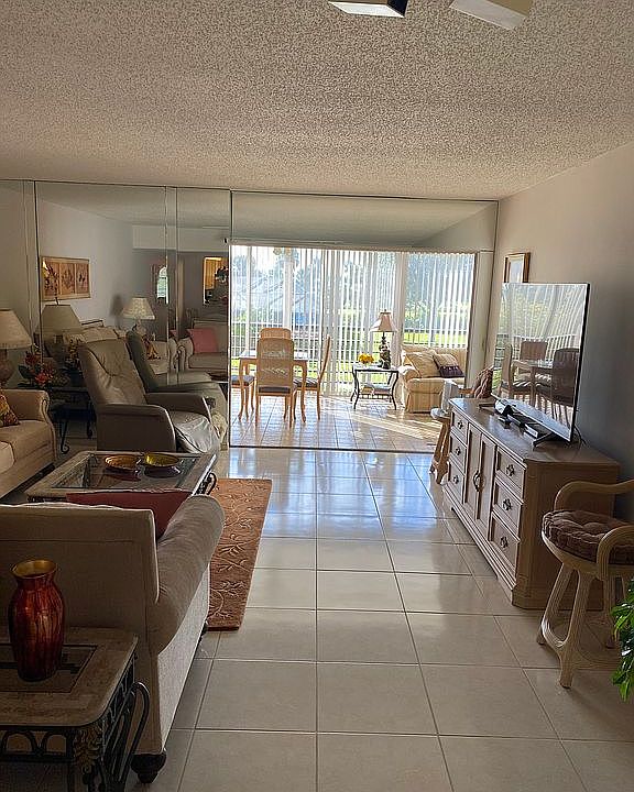 Fabulous Patios - peaceful, serene, ideal. Great golf course views from this 2nd floor 2 bd, 2 ba condo with over 1500 SF of living space plus a huge glass and screen enclosed lanai with wet bar to enjoy the view while entertaining. It features all neutral tile and decor in this spacious open floor plan. Each bedroom has their own bathroom, shower and large walk in closet. The master bedroom has a shower plus luxury tub and duel sink vanity. Cozy breakfast area off kitchen. Ceiling fans in kitchen, Bed Rooms and dual fans in the Lanai. Full size washer/dryer. Delightful active clubhouse and 2 heated pools with hot tubs await you. This unit comes with full storm/security shutters all around. Maintenance includes building exterior/cable TV/common areas, landscaping & lawn maintenance. If interested, call me 561-213-5888. It also comes with your own covered carport. 55+