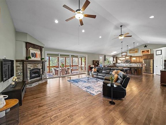 - Features: Ceiling Fan(s), Fireplace, Kitchen Island, Pantry