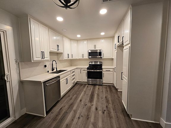 Beautiful and Immaculate REMODELED MODERN TOWNHOME in QUAINT COMMUNITY. Small Townhouse--only 915 SF. 3 bedrooms (master bedroom is decent size; other two bedrooms are small), 2 bathrooms, 2 car garage connected through patio, 2 patios, end unit, no shared walls, open area. New appliances, doors, hardware, paint, etc. Washer/Dryer area in Garage. Garage connects to patio which connects to property interior. Move-in cost is $2490 (first month's rent) plus $2490 (security deposit) = $4980. Tenant responsible for all utilities (gas, electric, water/sewer/trash). Oven range, microwave, and dishwasher INCLUDED. Fridge and washer/dryer not included. Please make sure 915 SF is enough space for you. No dogs. Property will be ready for move-in 3/1/25. Move-in cost is $2490 (first month's rent) plus $2490 (security deposit) = $4980. Tenant responsible for all utilities (gas, electric, water/sewer/trash). Oven range, microwave, and dishwasher INCLUDED. Fridge and washer/dryer not included. No dogs. Property will be ready for move-in 3/1/25.