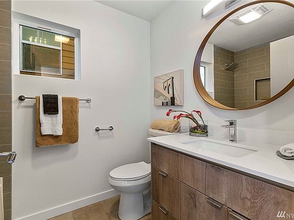 Thoughtfully designed new construction across from Licton Springs Park. Bright living with lots of windows. Modern kitchen w/quartz slabs, ss appliances. 9' high ceiling, 3 beds, office/bonus room. AC mini split, heated floor in the m/bath. Large roof deck with 360 degree view for entertaining w/ view of Mt. Rainier and Seattle. Close to Northgate Mall & light rail station across the new pedestrian bridge! Excellent investment! No HOA fees.