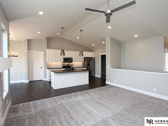 The "Marie" by Lewis Homes. This 4 BR house with over 2200 sqft of finish sits on a walkout lot. Very open floor plan with white cabinetry and wood floors throughout. Kitchen features beautiful flat granite island and countertops. Cozy stone fireplace in great room. Split bedroom design allows for private master suite. Master bath includes tile walk-in shower, tile floors and a granite double sink. Finished walkout basement features 9' ceilings, w rec room, full bath and bedroom. Full sod and sprinklers.All stainless steel appliances, including fridge. Andersen Windows, 2x6 exterior construction. Call today to schedule your private showing!
