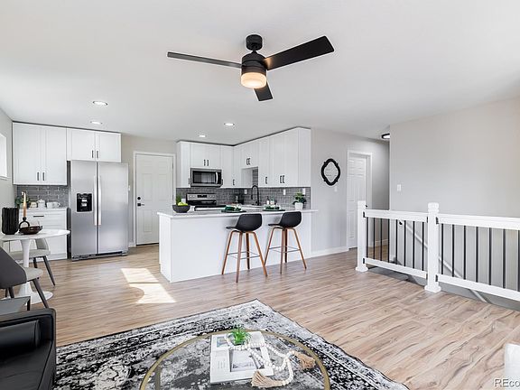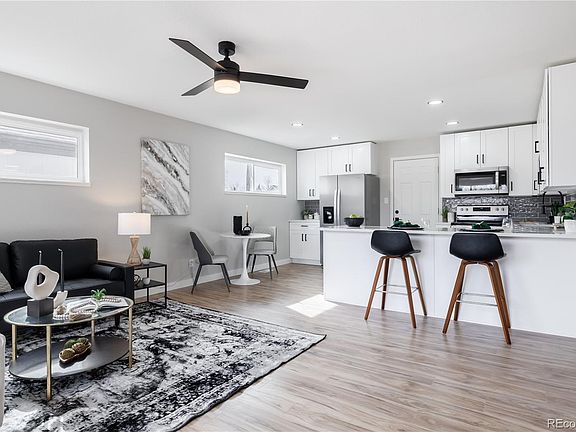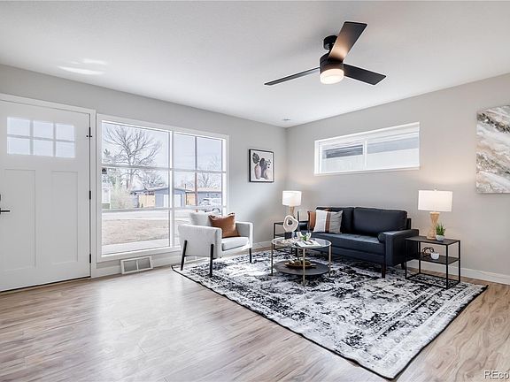 Beautifully remodeled Mid-Century Modern ranch five minutes to Old Town Arvada! This fabulous home features 2 bedrooms and a spacious full bath on the main floor, with an open kitchen/living area. All new kitchen features quartz countertops, white shaker cabinets, stainless appliances and custom tile backsplash. The full basement has an additional conforming bedroom, 3/4 bath, laundry room, under-stair storage and large bonus/flex space that could be transformed into a 4th bedroom! All new flooring, paint, hardware and light fixtures throughout! The home is complete with a 1 car detached garage with attic storage space above and a fully fenced yard! All new systems including new furnace, new Rheem tankless water heater, new central AC, new electrical panel and sewer line! 5 Year Roof Certification! Don't miss this amazing opportunity just a 5 minute drive from Old Town Arvada, 2 minutes to Arvada Ridge Light Rail Station, and 10 minute walk to Tomlinson Park with ponds, walking trails and playground!