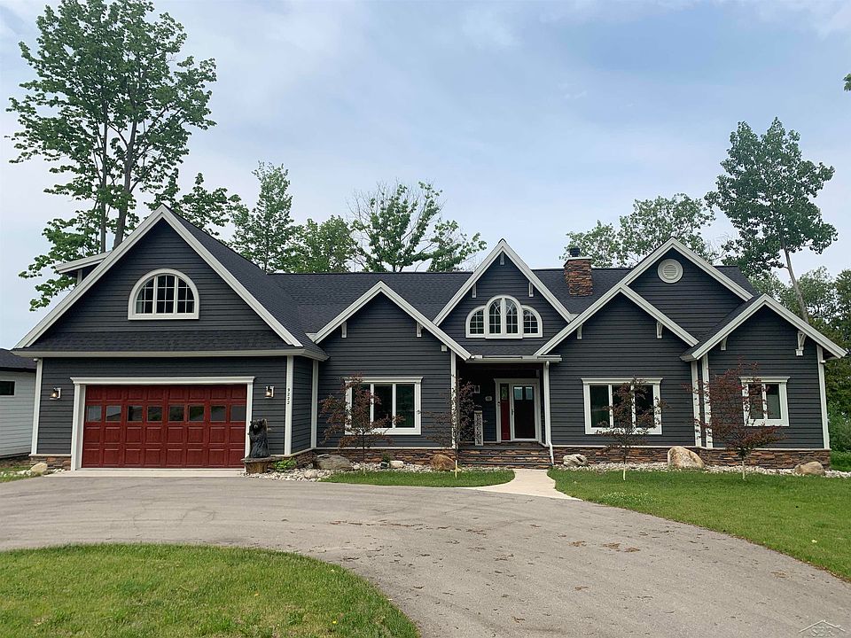 SE Torch Lake, Walker Shores. Lightly used newer lakefront home. All four bedrooms have private baths. Decks, stone patio, H/C water in the garage. Hard surface floors, storage loaded island kitchen opens to the great room. Title showers, solid surface countertops, excellent craftsmanship, and great views from every window.