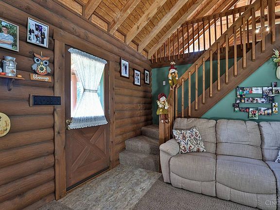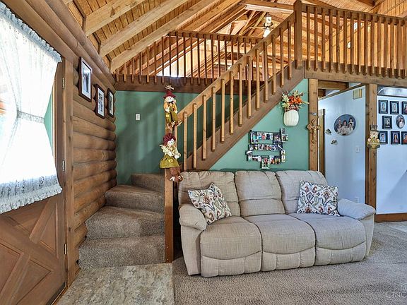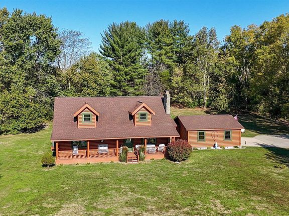 Well maintained 3 bedroom 2.5 bath log cabin on 2.679 acre lot with 1786 total sq ft. featuring eat-in kitchen with breakfast room & walkout to large covered deck area. Large great room with stone gas fireplace, large loft area with full bathroom perfect for 3rd bedroom with hardwood floors under carpet. 2 car oversized side garage. Above ground pool in backyard. Property backs up to Miami park area, with acess to the 8 mile trail from backyard. Additional 0.689 lot available to purchase for additional cost, call for more info. Original owners!