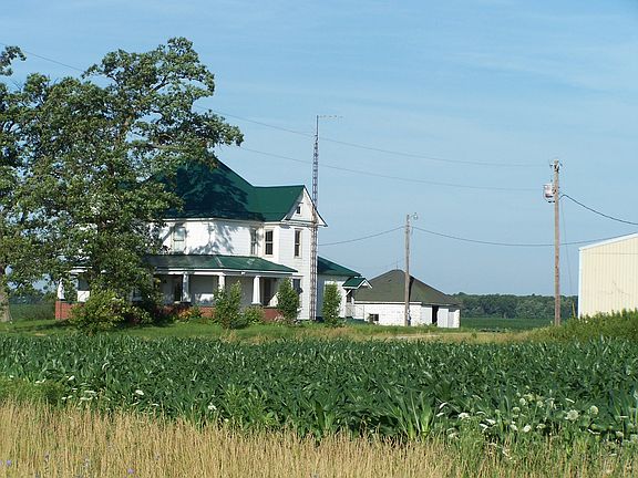 GORGEOUS SOLID OAK WOODWORK with LEADED GLASS WINDOWS TAKES YOU BACK IN TIME WHEN QUALITY COUNTED! Home is ENHANCED by the Large Foyer Area with Open Staircase, Pocket Doors, Built-in China Hutch, Butler Pantry, Fireplace Mantle, High Ceilings, and Hardwood Floors. Recent Updates include Newer Metal roof, Furnace, and Appliances. Other Amenities include a detached garage, above ground swimming pool and Possible 2nd bathroom upstairs. An additional 1.9 acres, 4400 Sq. Ft. Pole Barn, and grain bin available.
