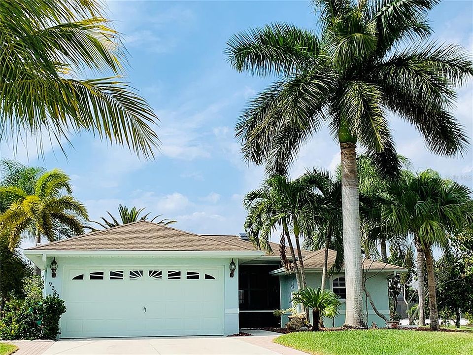 SELLER MOTIVATED!! NEW PRICE!!!WOW FACTOR FOUND HERE WITH UNPARALLELLED VIEWS of this TIP LOT WITH 170' (mol)OF WATERFRONT. Located in desirable community of South Gulf Cove!! You'll enjoy every aspect and amenity of this open floor plan home from the screened in entry, to beautiful views of your pool and waterfront as soon as you walk through front door, to the tile floors (except carpeted bedrooms). The oversized galley style kitchen boasts wood cabinets, quartz counters, closet pantry, and breakfast bar. You also have the convenience of a built-in desk/serving counter beyond dining area. Slider from dining area leads out to a pavered walkway to front of home or down to waterfront/dock. Ever popular split bedrooms with primary bedroom having an en suite with walk in shower as well as walk in closet. Grab bars at shower and toilet area. Guest rooms on other side of home both have sliders, one to pool area the other leads to back yard. Great room also boast access through slider to your pool and lanai. Your covered boat lift at dock is nicely situated as to not impede on the breathtaking water views of the Zephyr waterway. From this lovely community you need to drive only about 15 minutes to golfing and the gorgeous gulf beaches of Boca Grande or Manasota Key. Home is being sold furnished and if your looking for investment, has great Air BnB rental history too! BEST TASTING MANGO TREES ON THIS PROPERTY!! Come see today all there is to appreciate in this home. Florida's waterfront lifestyle is waiting for you.