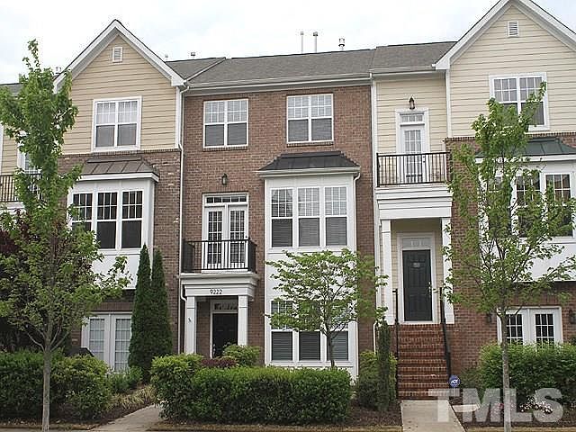 Lovely Brier Creek townhome w/ access to community pool & fitness center! Attached 2 car garage, 4 beds, 3 1/2 baths w/ a first floor bedroom + full bath, hardwood flooring & spacious living areas. Kitchen features solid surface counters, stainless appliances w/ a gas range & built-in microwave. Located within shopping, medical facilities & moments to Crabtree Valley, the RDU Airport & Research Triangle Park!