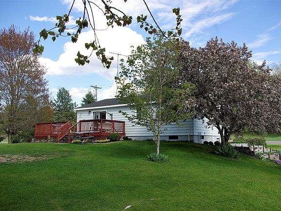 Ranch style 3 bedroom, 1 bath home with full walk out basement on 24.7 acres. Built in the 70's with many updates over the recent years including; 200 amp electric service, electric baseboard heating, 5 inch well with 18 gpm pump for watering livestock and gardening. Vinyl windows including basement. Lifetime architectural shingles. Large back deck overlooking stocked fishing pond and livestock pasture. 30x50 detached all steel construction garage. Out buildings include, a 24x32x10 pole barn with 16x32 lean to addition. A 16x20 lean to for livestock. Also a 10x12 hog house with pens, and a 6x8 chicken coop with yard.