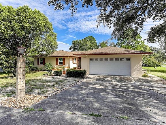 1980 built and very well maintained 4 bedroom 2 bath 2 car garage home with 2,028 sq. ft. of living area on almost a ½ acre corner lot. Separate 12' X 16' storage building with electric. There is an RV sewer connection in front of the shop. This home is in a non-deed restricted community. No HOA, no CDD. Corner lot with access to the back yard from a paved street. Bring your RV, your Motorhome, your boat and park it at home for free! This home features a split bedroom floor plan, separate formal living/dining area and a family room/kitchen area. Large screen enclosed lanai 15' X 18' with a solid vinyl floor along with an open patio 9' X 21'. All the windows and the sliding glass door have been replaced with new insulated windows. The kitchen has been remodeled with real wood custom made cabinets and the countertops are solid core white Arborite. There is an inside laundry room and an attached 2 car garage. All the appliances are included: Range, Refrigerator, New premium Dishwasher (Dec 2019), New washing machine in 2020, Dryer, Freezer, New Water Heater in 2020. There is also a drink fridge. Please take a moment and view all the professional photos and virtual tour.
